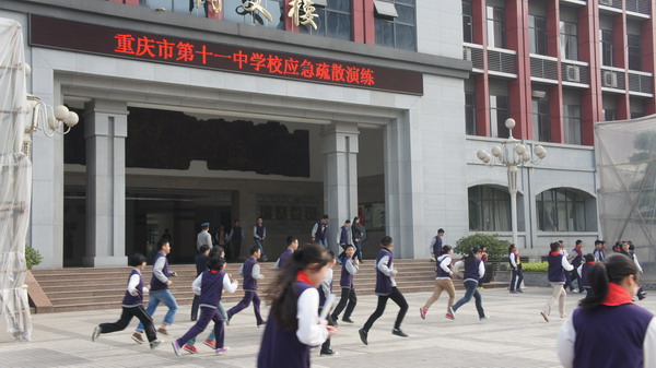 为让学生养成放学和集会时按疏散线路行进的习惯,避免发生踩踏事故;也为让师生提高抗击突发事件的应变能力,掌握在紧急时刻的逃生方法。近日,重庆市第十一中学校利用升旗仪式的时间举行了应急疏散演练。