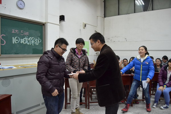2013年12月1日,晚上七点的博文楼五楼合班教室里突然响起了热烈的掌声,灯光明亮中是高二五班和二班的同学们一张张期待的脸庞。