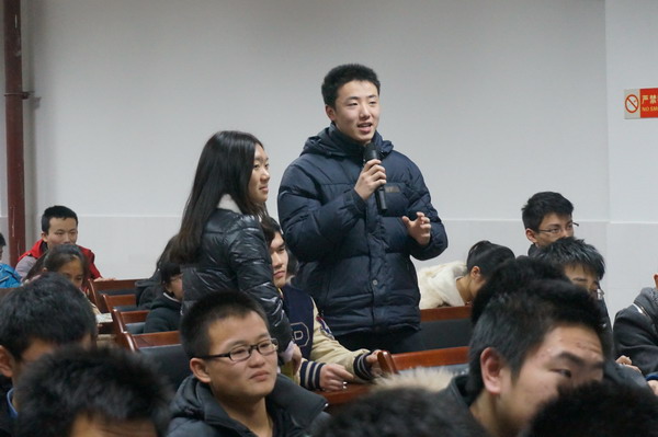 第二部分由高2011级28班的龙清清同学介绍2014年香港大学内地招生计划及申请流程,清晰地告知各位同学申报港大的具体步骤。在事前获悉高三同学们普遍希望对高校自主招生面试有更多了解,因而本次分享会的第三部分则聚焦于港大全英文面试的流程以及亲历者们的经验借鉴。龙清清同学首先向同学们介绍了大学面试的准备工作、小组面试的试题解析和面试技巧,然后展示出几道面试真题,邀请现场的同学模拟面试的环境各抒己见,小试牛刀。期间不少同学踊跃发言,就“政府是否应该控制网络”等议题提出独树一帜的观点,令现场同学眼前一亮。