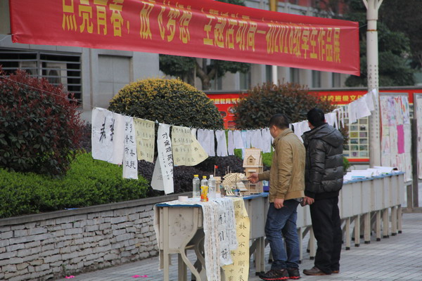 2014年3月10日是重庆11中初2016级“点亮青春、放飞梦想”课改展示周活动顺利开展的第一天,今天在修德楼广场展出的是学生们在寒假完成的英语手抄报、语文手抄报、书法作品、手工作品以及班级菜谱集。英语手抄报新颖的设计,语文手抄报丰富的内容,书法作品苍劲的字体,手工作品精致的创意以及班级菜谱集精美的制作,都赢得了前来观看的师生们的一致好评。在接下来的四天里,语文组的李慧瑶、张雪静老师,数学组的王怡、郑晓燕老师,英语组的马林丽、潘旺老师将分别进行同课异构,大胆探索新课改下“先学后教、以学定教”的教学模式。特别值得一提的是,本次课改展示周新推出了“点亮青春、放飞梦想”风筝节活动,在春天来临之际,让学生们放飞梦想,在今年有更大的收获。