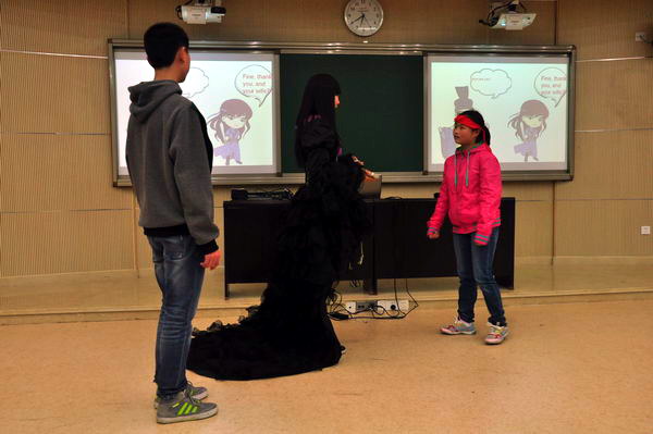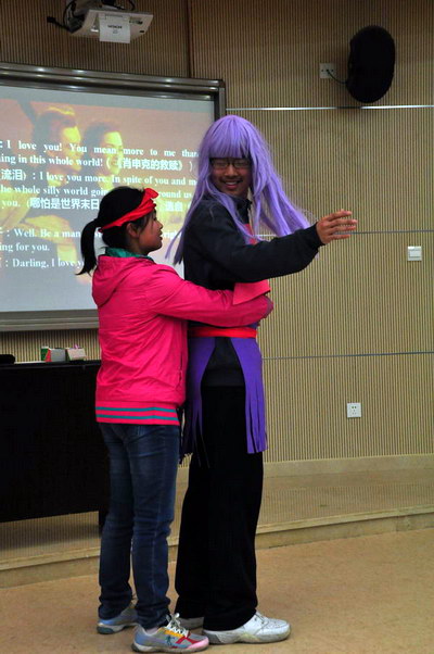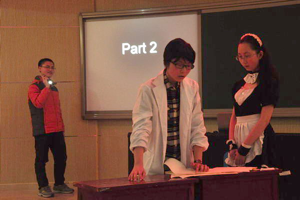 《heart》:第四组的同学讲述了一名科学家与她的机器人之间的故事。同学们身着精美的服装,以专业的道具和流利的英语展现了着科学家为自己的理想而坚持不懈的动人画面。