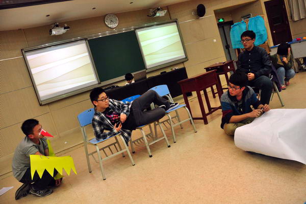 《灰姑娘》:第二组表演可谓创意十足,比如尧舜同学大胆男扮女装演绎了风华绝代的灰姑娘;李泽蘋同学堪称史上最帅的王子;陈露月等同学则将后妈与后姐妹的刻薄演绎得淋漓尽致。
