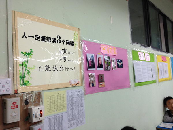 我们班级的墙上贴满了励志名言“志存高远,务实上进”、“你有什么,你要什么,你能放弃什么”、“你之所以迷茫,那是因为本该拼命的年纪你却想得太多”、“将来的你,一定会感谢现在拼命的自己”。一字一句都冲击着我们心房,让我们不自觉的燃起了斗志。
