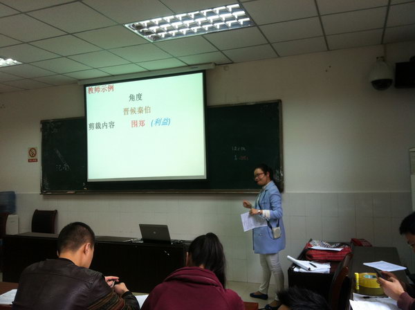 写作之时能用素材,但如何使人人熟悉的素材亮起来,则是不少学生的困惑。结合学校的“先学后教,以学定教”教改理念,高三备课组同仁悉心探讨指导学生考场作文亮色增分的策略,并积极开展同课异构研讨活动。陈晗、董强老师的公开课,拟在以向全校同人展示为契机,促进课题研究的深入推进。陈晗老师以2013年流行大片《地心引力》太空旖旎版预告片为开头吸引学生,继而以课文《烛之武退秦师》为例,进行多角度撷取示范,然后引导学生抓住某一角度,为我所需有效撷取,从而自然得出一定规律。整堂课活跃而有序,是知识性与趣味性有机结合的典范。董强老师则以一组高考优秀作文片段为例,引导学生品味不同角度撷取素材的妙处,做到了典型性与示范性的高度统一。整堂课重点突出自然,难点突破巧妙,层次明晰,逻辑严密,充分展示了娴熟的课堂掌控能力。