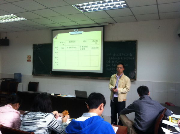 课后,我校语文教研组长傅文霄老师组织大家进行了热烈的讨论。大家对两位老师的课予以了高度评价,同时,也对高2014级语文备课组的考场作文亮色增分指导策略课题提出了不少宝贵的建设性意见。南岸区语文教研员曾伟老师全程参与了此次活动。