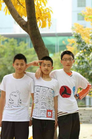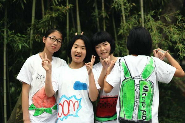 这个合影可不一般,同学们身着的白T恤衫上,图画全由他们自己亲手操刀绘制。美术课上,一笔一画,或淡抹或浓妆,或清丽或扎眼,更有甚者在班里收集同学们的签名,用心细致。
