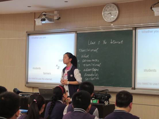 本次同课异构的阅读文章题为“互联网”。这一选题贴近学生生活和学习,具有极高的教育意义。但是,文章较长,偏重说理,且生词较多,学生阅读起来有一定的困难。两位老师都充分考虑到了这一点,采取了课前预习、小组合作、个人和小组展示等措施充分调动学生的积极性、自主性、合作性和参与性,提升了课堂教学的效果。