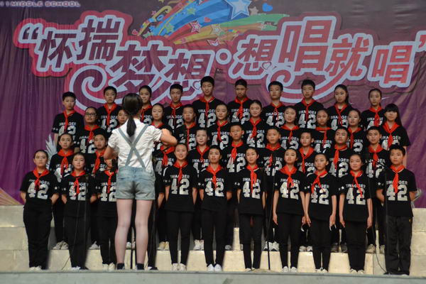 2014年5月7日星期四下午两点三十分,校体育馆里传出一阵阵优美动听的歌声。那歌声犹如冬日的暖阳,夏日的清风,春天的花草香与秋天的瓜果味,飘扬在校园上空,久久不散。