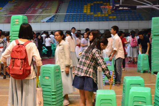 (比赛结束后,各班将凳子归位)