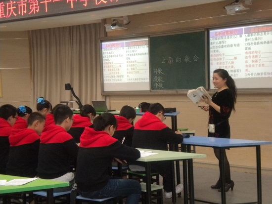 2014年5月13日上午,我校初2015级语文备课组的张阳、陈竹两位老师在多媒体1室就《云南的歌会》一文展示了别具匠心的两种设计方案,对“先学后教,以学定教”的教学理念做了进一步的诠释和探索。