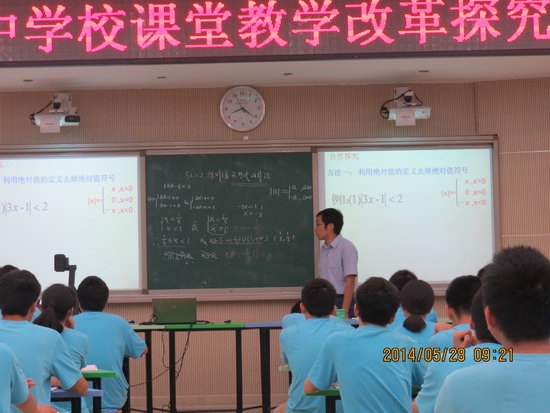 在《绝对值不等式解法》的同课异构展示中,王建杰老师从绝对值的定义,几何意义和图像多方面诠释了绝对值不等式的解法,让学生在轻松愉悦地课堂氛围中掌握了学习内容。朱涛老师充分调动学生学习的主动性和积极性,课堂上学生大胆发言,相互补充,积极讨论,展示出一场热火朝天的学习景象。