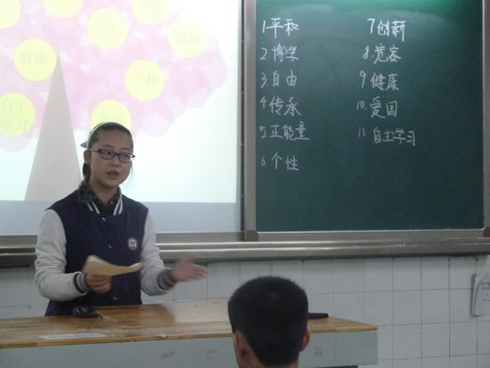 本次比赛共有两轮。第一轮是两分钟的小演讲来诠释各个关键词。有的演讲轻松幽默,有的庄重肃穆,感染了台下的每一个人。在第一轮的筛选中,有三位晋级,三位淘汰,剩下的五位同学将进入第二轮比赛——多种形式呈现关键词。小品、唱歌、访谈等形式被同学们用于呈现关键词,并展示出了非常不错的效果。最终“传承、爱国、个性、健康、博学”这五个主题词取得胜利。在主持人、评委、记分员、参赛选手和观众的完美配合下,本次活动取得圆满成功。