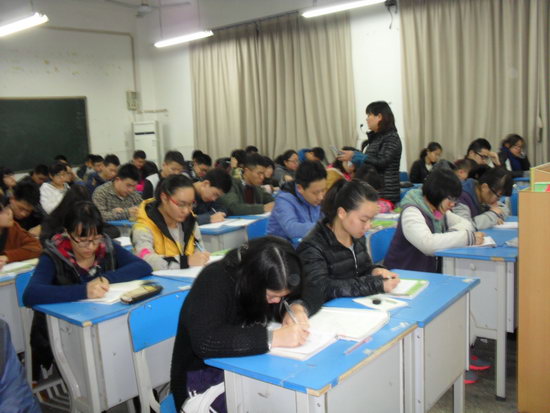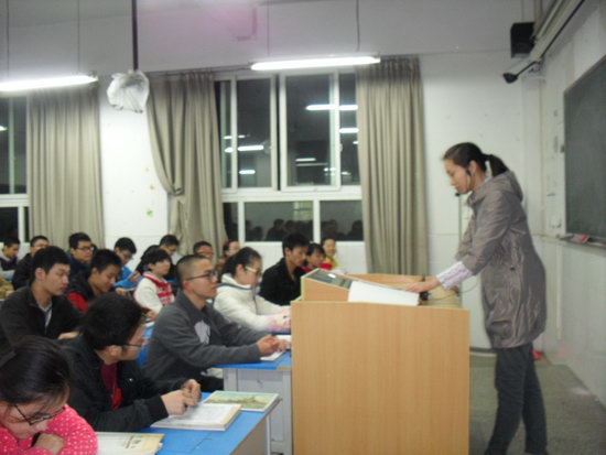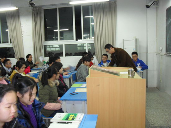 11月16日晚6点50分,下课铃声刚一响起,同学们就迅速冲出教室,奔向各自的目标教室。前一天晚上已抢到了名额的同学兴高采烈地坐到相应的位置上,没抢到名额的同学只好站到教室的后面,不过没关系,目的在于听老师指点高招,不在有无座位。不到五分钟时间,5间教室无一不是“人满为患”。文数庞洪国老师、理数刘翠碧老师、物理董红琼老师、化学李光亮老师、生物艾燕老师,5位老师各施所长,以典型的习题、精当的讲评,让同学们茅塞顿开,收获多多。