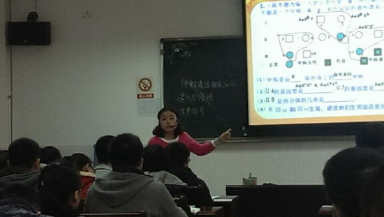 在学校“先学后教,以学定教”理念的带领下,柏麟老师整堂课满怀激情,注重以学生为主体设置问题情景,让同学们感受高考的高频考点。学生先练,再让学生自己评讲习题,从中发现问题,解决问题。对上节课的知识进行简单回顾之后,分两个板块介绍了伴性遗传的应用。第一板块是遗传系谱图。先进行高考题作答,学生自主讲解后,师生互动讨论,得出解题方法规律,然后回过来看每道题的考点,学生分析之后,再次讨论。学生分析考点,自主命题是本堂课的一大亮点,让学生更深刻地体会高考题的考法,更有效地把握高考题。第二板块着重于生产实际的应用,创立了芦花鸡和非芦花鸡的分辨雌雄的情景,学生自主探究杂交组合,让伴性遗传应用于实际生活,并在实践中发现规律,应用规律。创设生活情景,让整堂课变得生动有趣,实现了生生互动,师生互动,课堂更加有效和实用。
