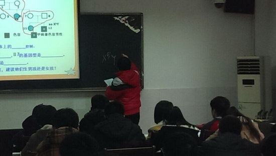 11月26日上午,高2015级生物组柏麟老师在“青年才俊展风采”赛课活动中展示了一堂精彩的生物复习课——“伴性遗传的相关应用”,得到了老师们的好评。