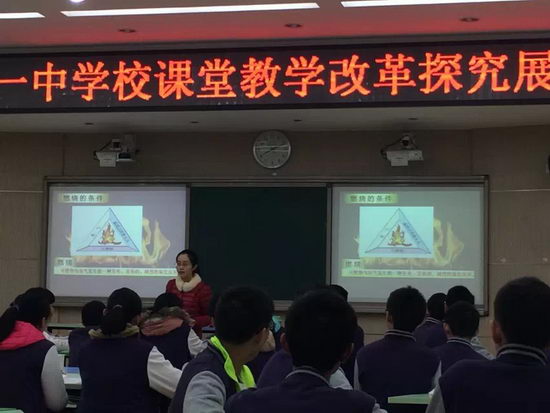 本次“同课异构”的课题为九年级 上册中的《燃烧与灭火》。高2017级派出教师代表蒲尚云,初2015级派出教师代表袁铃,对本次课都做了全新的教学设计,完整体现新课改下的“先学后教,以学定教”的主题思想。