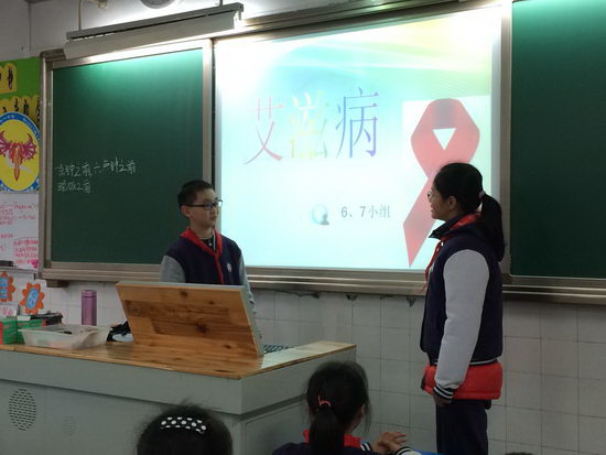 首先,同学们讨论的是艾滋病的传染和危害,各个小组向全班分享着本组的观点,同学们的看法各有千秋;主持人的总结让同学们大有收获,知道了艾滋病对自己、家庭、社会都有着巨大的危害,也了解到艾滋病的几大主要传播途径。