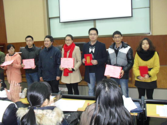 会议的第二部分由钟校长为在11月份举行的“青年才俊展风采”赛课活动中获奖的教师颁奖。他们都是我校近几年新进的首次负责高三教学的老师。通过此次活动,这些青年教师均感觉收获颇多。