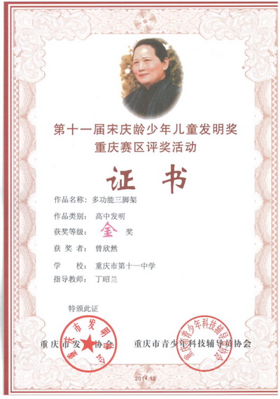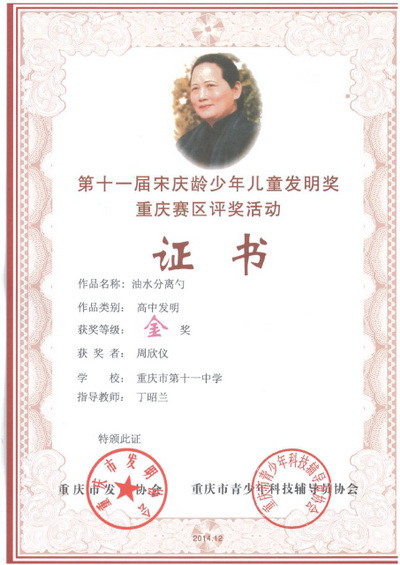 喜报:我校学生作品获第十一届宋庆龄少年儿童发明奖金奖