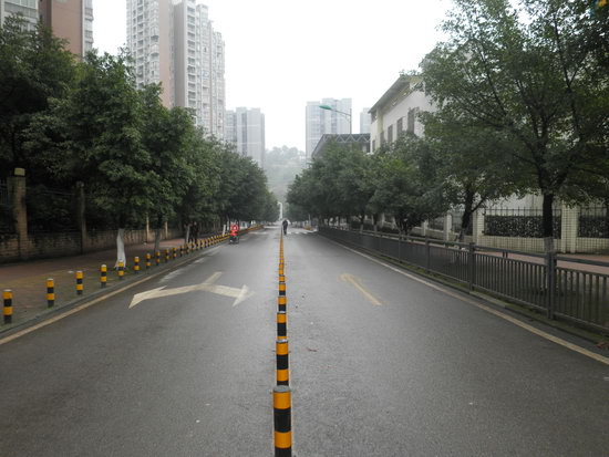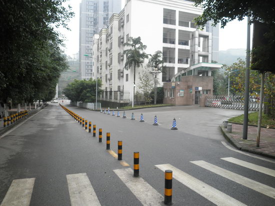 2014年,随着重庆机动车保有量飙升,校门外公路上上学放学高峰时期交通秩序更为混乱,安全隐患更加突出。一切为了孩子、一切为了安全,学校转换思路,不等不靠、自力更生、自主探索解决问题的办法,采用在公路中间安装隔离桩的方法,将2车道的公路一分为二,使得公路的任何一边无法停车,彻底解决大门外公路乱停乱放、秩序混乱、隐患突出的老问题。