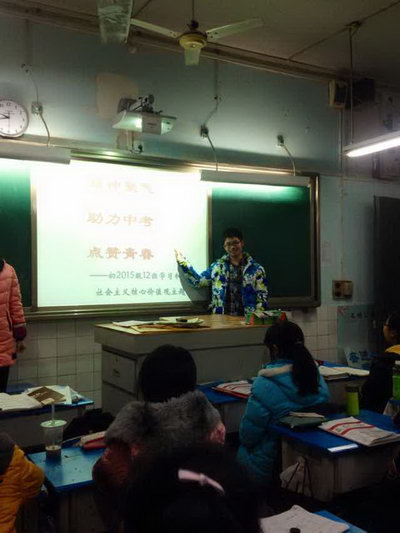 为深入学习和践行社会主义核心价值观,增强同学们对24个字“社会主义核心价值观”的认识,提高同学们的思想道德水平,2015年1月25日,我班紧紧围绕社会主义核心价值观“24个字”精髓,以主题班会的形式传递核心价值观的“正能量”,为中考助力,为青春点赞。