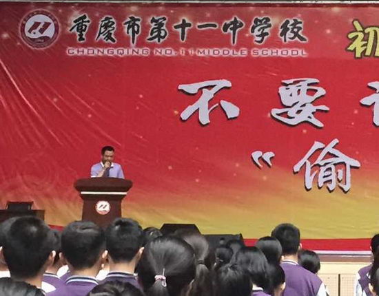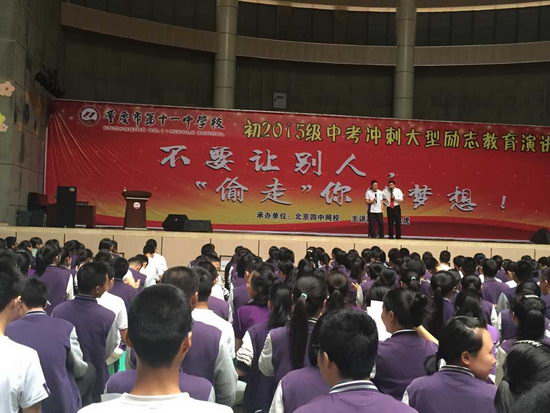 2015年5月12日下午,当一个浑厚的男音在体艺馆中响起,同学们爆发了热烈的掌声。初2015级中考冲刺大型励志教育演讲会——“不要让别人偷走你的梦想”在我校召开。