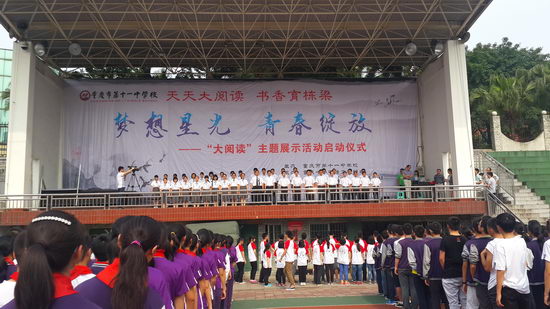 5月18日下午第三节课,我校在田径场举行了“大阅读”活动启动仪式。本次活动的主题是“梦想星光,青春绽放”。
