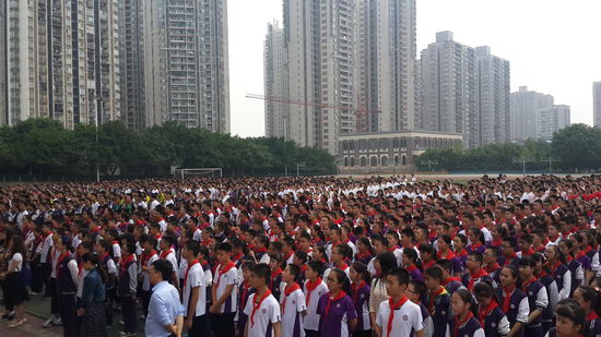 在钟校长宣布“大阅读活动盛大启动”后,各年级分别集体朗诵经典诗文,展现青春风采。其中,高一(10)班、高一(9)班还分别独自创意诵读了《大学》(片段)、食指的《相信未来》。最后,全校一起朗诵梁启超名作《少年中国说》,千人诵经典,气势磅礴。