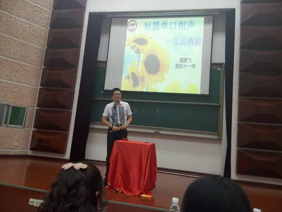 代表高一年级参赛的班主任邓虹老师、童鹏飞老师和马骥老师表现尤为抢眼。童鹏飞老师身着一身爽朗帅气的西装,开门见山,深入浅出,结合作为国际班班主任的实际经验,要用爱心唤醒未来,以生为本,以心养心,尊重和信任每一位学生;而邓虹老师一开口便吸人眼球“学生虐我千百遍,我待学生如初恋”,讲到在与学生的“相恋”到“热恋”的阶段中发生的不同问题必须采取不同的处理方式;马骥老师以“爱一朵花儿,就要陪她绽放”诗一般的开场,用与学生之间的温暖互动感动全场。