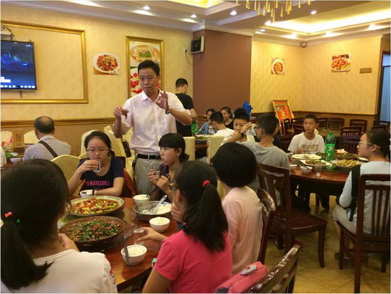 阅兵仪式结束后,在年级主任李建兵老师的带领下,青年党员教师和所有留校学生同进午餐,共话家常,几十颗炙热的心欢聚一堂,其乐融融。李建兵主任亲切地询问同学们开学伊始在学习和生活上是否遇到困难,并鼓励大家尽快适应高中这一全新阶段,在紧接着的军训中要发扬不怕苦不怕累的革命精神。