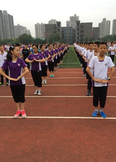 9月8日,阴,天气凉爽,我校——重庆十一中,在运动场上,教初中年级的学生们做武术操——《英雄少年》。随着音乐的响起,同学们昂首挺胸、陆陆续续地来到运动场上,整齐地站好了队形。紧接着,领操员就位,便开始学操。