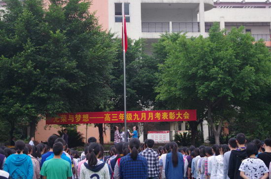 迎着煞爽的秋风,全体师生汇聚在运动场,整齐列队,举行高2016级九月月考表彰大会,以“光荣与梦想”的名义共同分享九月的成长与快乐!