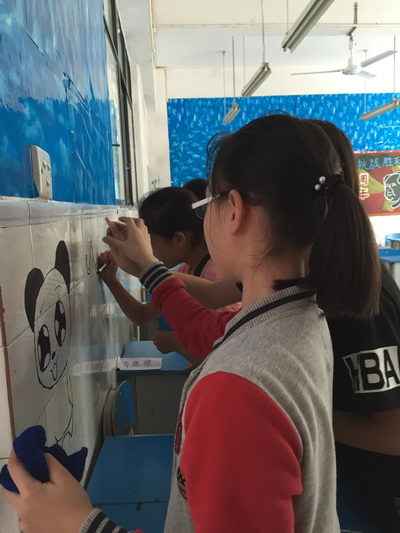金秋十月送凉爽,丹桂飘香梦飞扬。2015年9月20日下午3点,初2018级10班的同学们早早地来到教室,也许此时还有许多同学还在返校的路上,但初2018级10班的教室里已有十几位同学正在美化教室。他们有的正对照着绘画素材的书,在皮纹纸上画起了各种动物;有的正拿着同学们的暑期旅游照片沉思着;有的正在认真地贴着墙纸……通过此次美化教室的锻炼,新班级的凝聚力得到了很大的提升,同学们的学习环境得到了优化,班级不仅是学习的地方,而且处处流露出家的温暖。