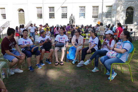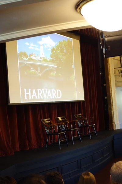 早上10点,一进到会场便感受到来自哈佛大学的魅力,来自世界各地的家长学生汇集于此聆听招生官和哈佛学生的介绍。哈佛大学汇集了全球的精英学生,他们向全校90%的学生提供奖学金,这次夏令营的两位哈佛大学辅导员就分别获得了3万美金及全额奖学金的荣誉。座谈会上,家长踊跃提问,关心自己的孩子怎样才能进入哈佛。招生官表示,除了优秀的成绩,他们更看重的是你个人的魅力,他们希望更多有自己特点的同学进入哈佛大学学习。所以如果你对自己的成绩有信心,但不知道自己是否适合哈佛大学或者其他国外优秀大学的同学,你们可以到学校国际部来咨询并可获得学校直接的介绍手册。(国际部的地址在博文楼404办公室)