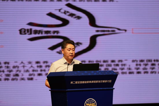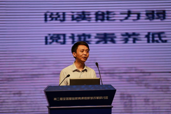 首先,立足核心素养,明确育人目标。钟校长指出学校的根本任务是培养人、发展人。基于国家对人才的需求和学生适应未来发展的需要,结合对十一中百年校训的现代解读,提出了培养“有人文素养、科学素养、创新素养的家国栋梁”的育人目标。其次,规划课程体系,完善课程结构。钟校长进一步指出,要实现育人目标,必须有合理的课程体系。十一中在专家指导下开展了SWOT分析,通过对过去经验的总结和全方位的论证,将课程体系分为基础课程、拓展课程、精英课程三级,完善了课程结构。第三,开发课程资源,推进课程实施。为了保证实现育人目标,十一中完善了有效的课程实施与评价,并开发、实施了学校特色课程——“大阅读”。钟校长对“大阅读”课程开发与实施的背景作了简要分析,并从六个方面对“大阅读”的“大”进行了诠释。最后,钟校长对十一中五年来的收获进行了总结并对未来作出向更高目标迈进的展望。
