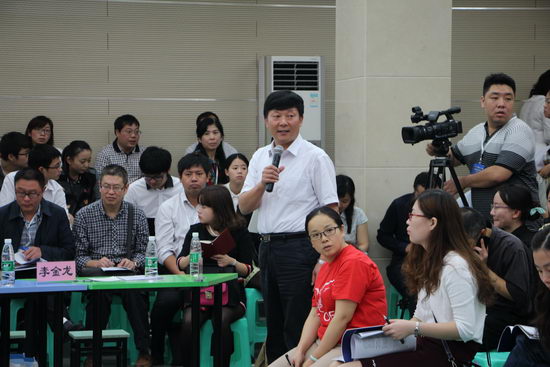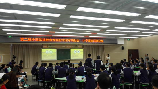 10月16日上午,第二届全国基础教育课程教学改革研讨会中学组课堂教学观摩活动在重庆市第十一中学校修德楼四楼多媒体教室顺利举行。教育部基础教育课程教材发展中心副主任刘月霞、中国教研网执行主编朱立祥、北京师范大学教授郭华、北京市海淀区教师进修学校副校长刘汝明、天津中小学教育教学研究室主任李金龙、青岛二中校长孙先亮、上海市教育局原副主任吴端辉等有关领导和专家莅临活动现场并进行了专业点评。来自全国各地的专家、学者三百余人参与了本次活动。本次活动由天津中小学教育教学研究室主任李金龙主持。