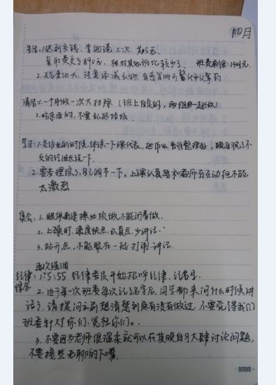 纪律:1、每天下午5:55全班安静,纪律委员开始招呼纪律并记名字。