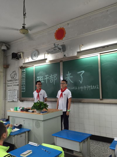 在开学的时候,班主任老师根据同学们填写的调查表任命了临时班干部,经过一个月的锻炼和对自己工作岗位的了解,同学们纷纷走上了竞选的讲台,这其中还包括了先前没有担任班干部的同学。