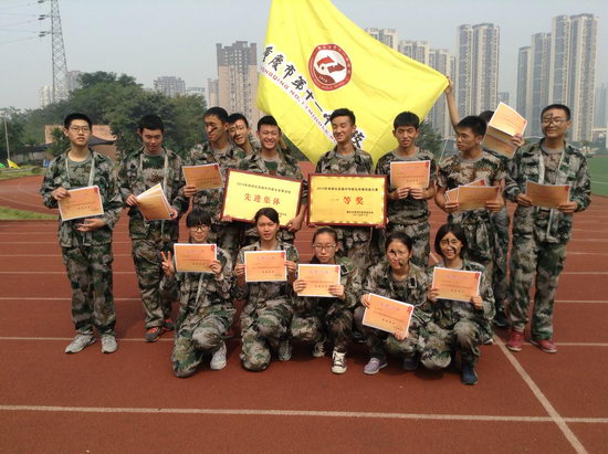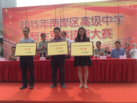 最终,我校荣获了“军训先进集体”称号,并获得“2015年南岸区高级中学新生军事技能大赛”一等奖,欧宾校长出席了颁奖典礼。