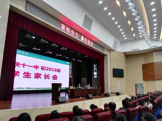 上周五,初一年级在学校师生活动中心召开家长会。这是年级家长会首次在师生活动中心召开。
