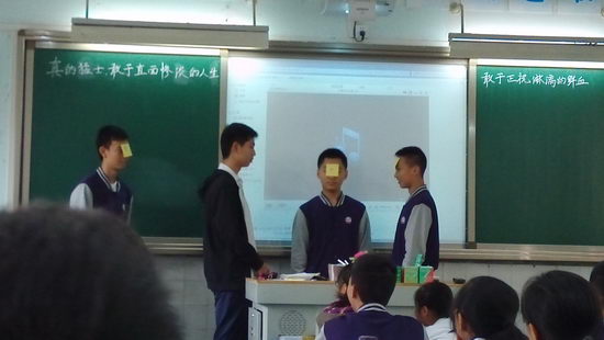 10月18日,高2018级3班上了一节与众不同别开生面的语文课。课堂上同学们展示了自己精心准备的课本剧,教室里传来阵阵笑声。