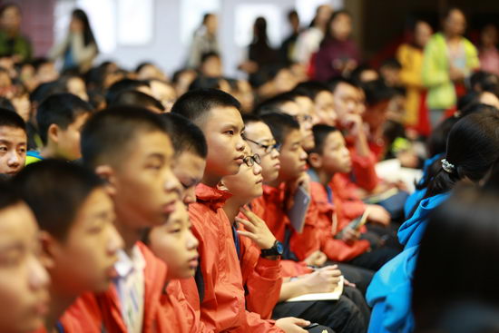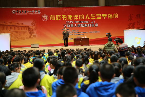 讲座现场,赵丽宏教授娓娓道来,饱含深情地为同学们带来童年的读书经历——自己和书的故事。同时,他对十一中学校的特色课程“大阅读”给予了高度的评价。