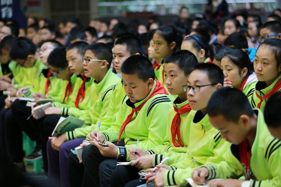2015年11月12日下午四点,重庆市第十一中学“2015——2016学年度(上)文幼章大讲堂系列讲座”之“有好书相伴的人生是幸福的”主题讲座在体艺馆隆重举行。我们有幸邀请到了著名作家、散文家、诗人、全国政协委员、中国作家协会全委会委员、中国散文学会副会长、上海作家协会副主席、《上海文学》杂志社社长、华东师范大学、交通大学兼职教授赵丽宏先生给我们带来一场精神的洗礼。我校初中部1000余名师生聆听了此次讲座。