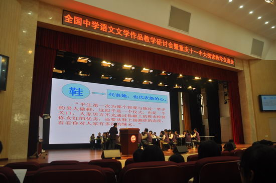 2015年11月13日下午,全国中学语文文学作品教学研讨会暨重庆十一中大阅读教学交流会在重庆市第十一中学校文益堂隆重举行。重庆市第十一中学校田卫老师携高二·九班学生为与会嘉宾上一堂题为“鞋”的现场观摩课,本篇目《鞋》由中国当代著名作家刘庆邦先生创作。