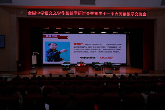 2015年11月14日,由国家教师科研基金“十二五”重点课题大语文课题组主办、重庆市第十一中学承办、中国阅读研究会协办、全国中语专委会提供学术支持的 “全国中学语文文学作品教学研讨会暨重庆十一中学大阅读教学交流会”在重庆十一中隆重举行。会议分为两个部分,分别由程翔、黄厚江两位特级教师为我们展示课堂观摩课以及专家主题报告。
