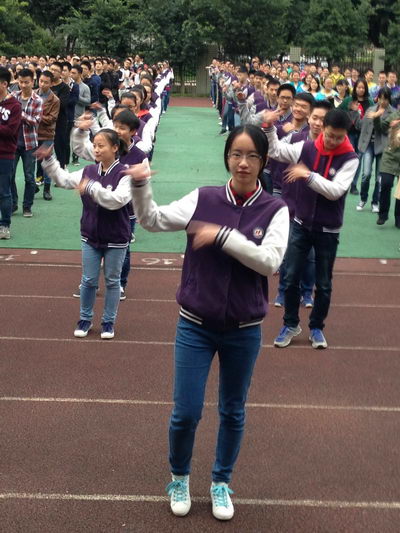 2015年11月13日,CBD高三校区举行了课间小苹果大赛,在经过赛前接近一月的训练后,全年级的学生都是信心满满,心态积极,抱着友谊第一,比赛第二的心态参加比赛。