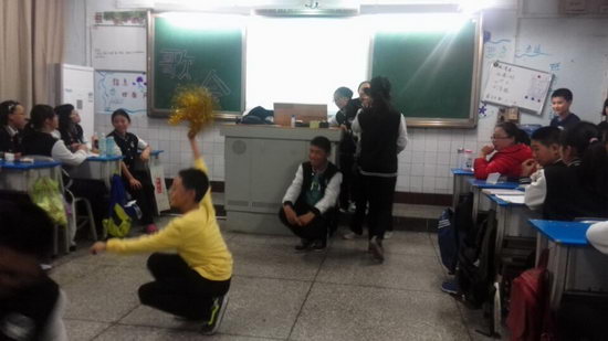 “你是我的小呀小苹果,怎么爱你都不嫌多。”只听他那独具特色的歌声,只见他那略显僵硬的舞步。尽管这并不是他的长处,但他仍全力以赴。没错,他就是我们的班主任,明哥!今天晚自习,我们在谢老大的领导下举行了一场别具特色的“歌会”!歌会第一项,也就是由明哥和翔哥的独秀歌曲。