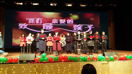 其中最催人泪下的,还数高一11班的家长集体表演——诗朗诵《致我们最亲爱的孩子》。诗歌由学生家长独立创作,爸爸妈妈们深情表白亲情,告白着对孩子们真切的爱和无限的希望。笔者还看见前座的一个女同学双眼噙着闪闪泪花。那一刻,她懂了,那一刻,我懂了。