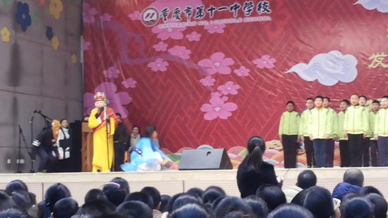 由初2017级的同学为我们带来的节目《大吉大利中国年》为表演拉开了序幕。节目自然是丰富多彩又充满意义。而我认为最有意义的则是由初2018级的同学带来的朗诵表演《唐诗宋词里的中国》了。