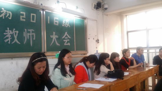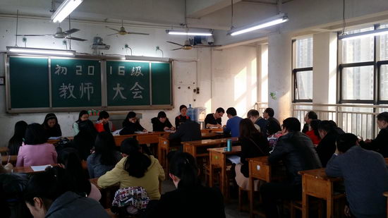3月3日,初三年级召开年级教师大会。为提高复习效率,冲刺一诊,年级组一改以往由年级主任、年级组长为主要发言人的会议形式,由各备课组长分别向全年级教师交流一诊复习情况,使学科之间相互借鉴,相互学习,共同探讨复习思路。